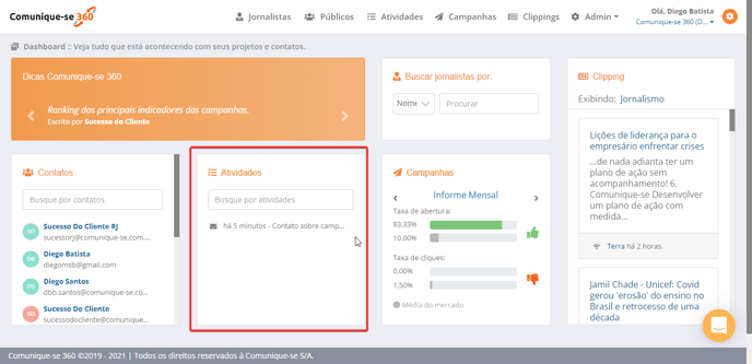 Suas atividades também aparecerão na Dashboard do 360: