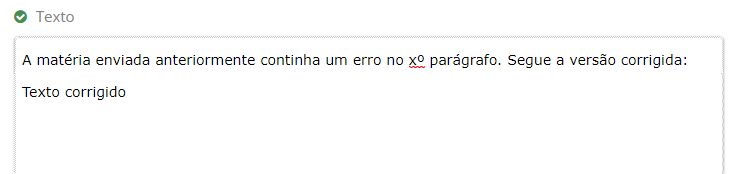 3 - Antes de inserir o texto corrigido, insira a frase "A matéria enviada anteriormente continha um erro no xº parágrafo. Segue a versão corrigida:"