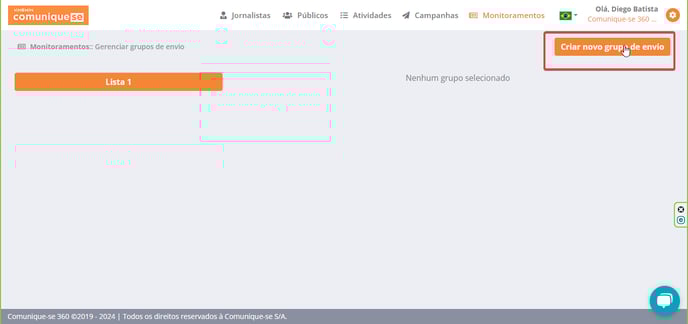 A tela que se abrirá apresentará todas listas criadas até hoje, você poderá editar elas sempre que quiser. Para criar uma nova, selecione Criar novo grupo de envio: