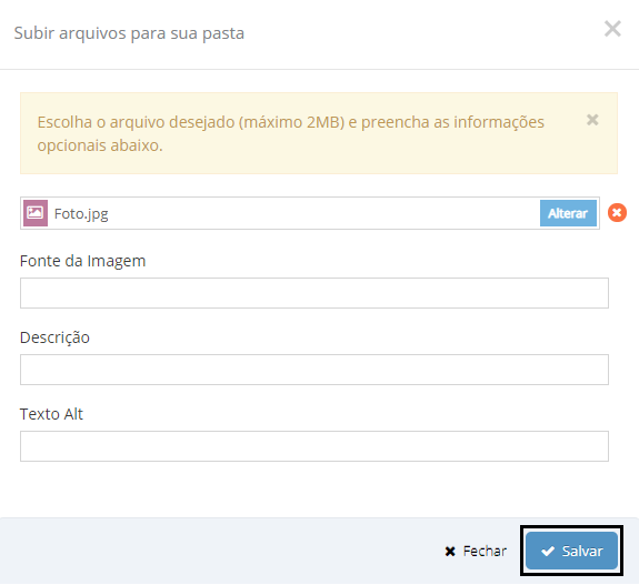 Prontinho! Ela aparecerá como miniatura no campo Imagem.