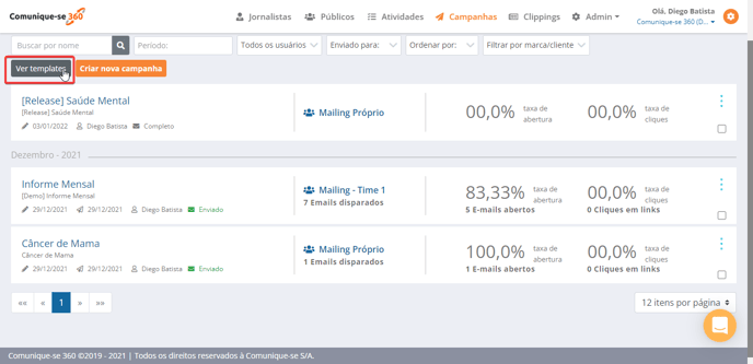 O CSE 360 permite que você utilize templates pré-criados por nosso time ou que você crie o seu próprio template. Para iniciar a criação do seu template, abra o módulo de Campanhas e clique no botão Ver Templates.