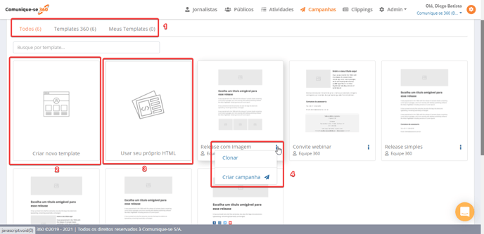 Criar campanha - Inicia a criação de uma campanha com o template selecionado.