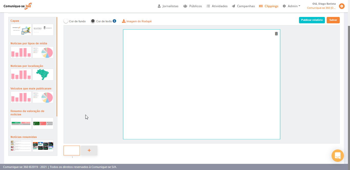 No próximo passo você selecionará um relatório que deseja editar ou se deseja criar um novo, para iniciar um novo relatório clique em Criar novo relatório.