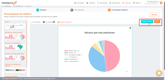 Para gerar o link de seu relatório, clique em Publicar Relatório: