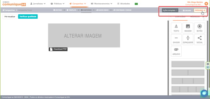 Não se esqueça de ir salvando suas alterações ao longo da montagem, ao finalizar salve e clique em próximo no canto superior direito.