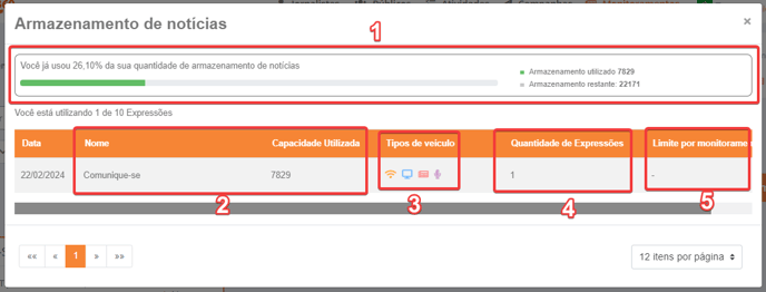 O Comunique-se 360 trabalha com uma quantidade de notícias que você poderá armazenar, chamado Armazenamento. Caso você tenha 5.000 de armazenamento, esse é o total de notícias que você poderá ter armazenado em sua conta.
