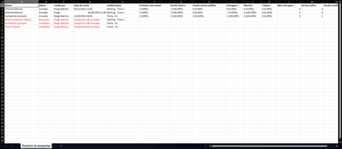 O 360 permite que você gere uma planilha que resume os dados de relatório de várias campanhas, assim você pode comparar campanhas ou trabalhar os dados como desejar.