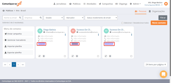Por exemplo, você pode ter uma lista de público de RHs do Brasil, onde você alimentará todos os contatos que possui. Você pode utilizar os marcadores para identificar de qual estado é cada contato, desta forma: